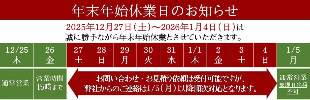 また、新年の出荷作業は1月6日(火)から再開いたします。